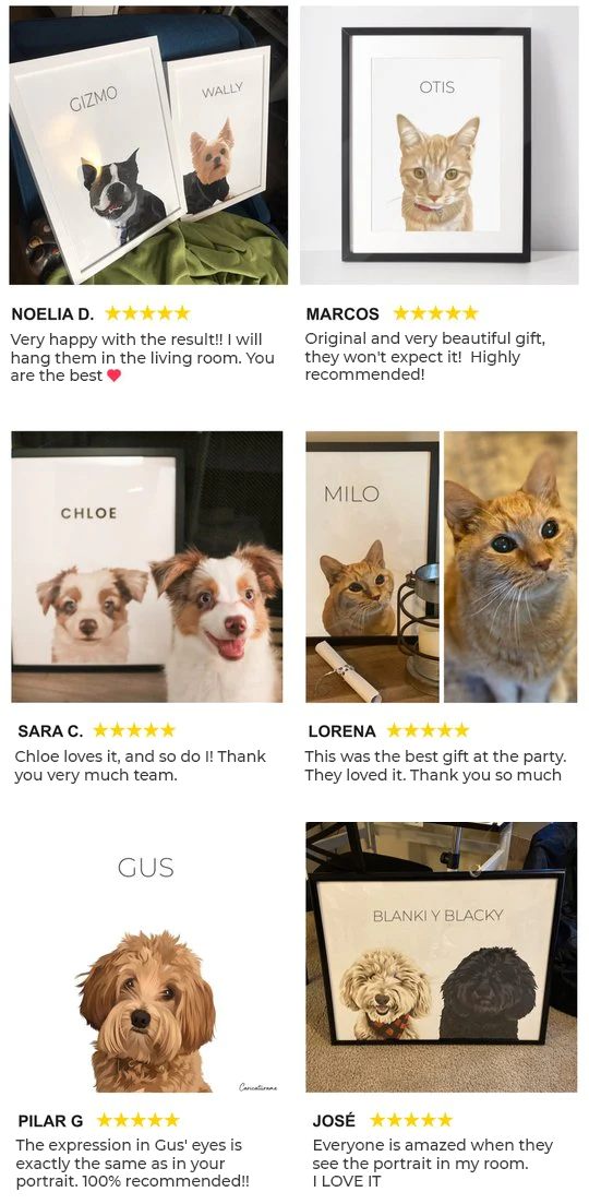 You're just two steps away from getting your portrait: choose the style and tell us the name of your pet.